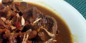 Warna kuahnya agak coklat, tapi cendrung hitam. Rasanya sedikit pedas dan hangat khas rempah-rempah.